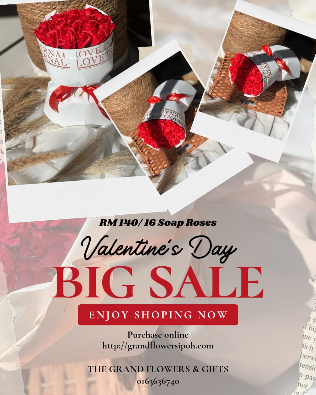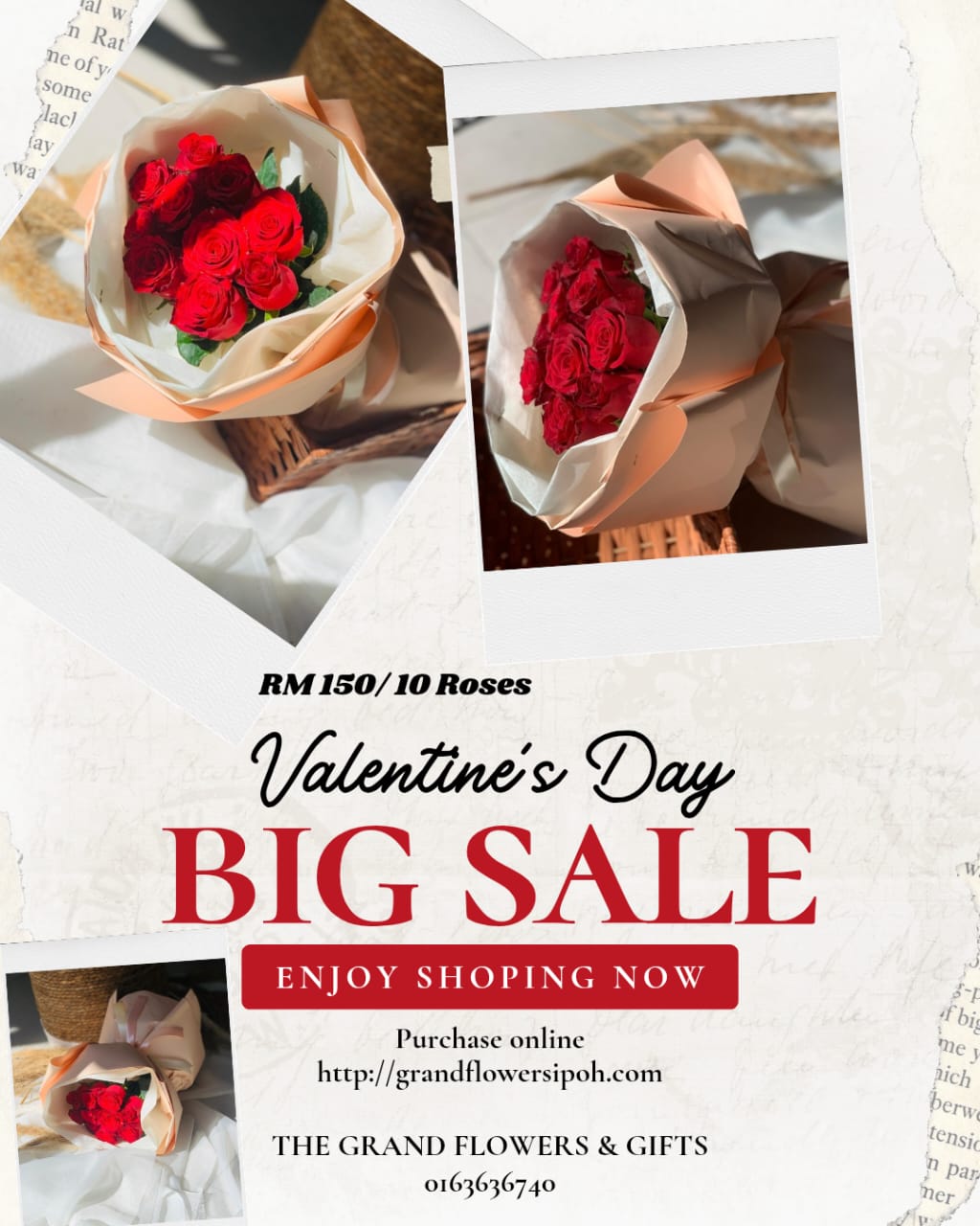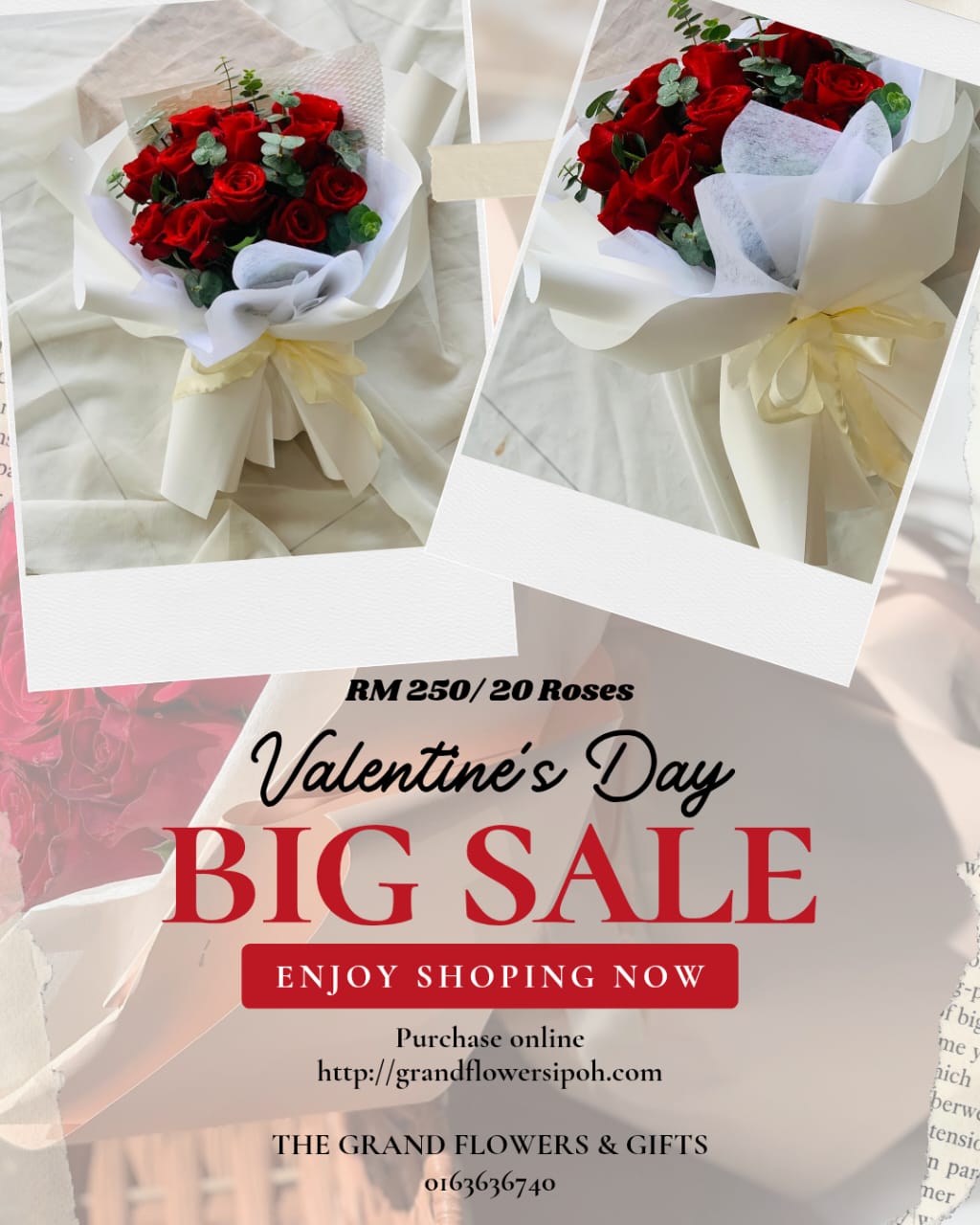 Established five years ago in the heart of Ipoh town, The Grand Flowers & Gifts has flourished into a name known for creativity, reliability, and a personal touch. With an eye for floral artistry and a heart for our customers, we create handcrafted arrangements for every celebration — from grand weddings to spontaneous smiles. Each bouquet is a reflection of care, precision, and purpose, brought to life by florists who understand the language of flowers.