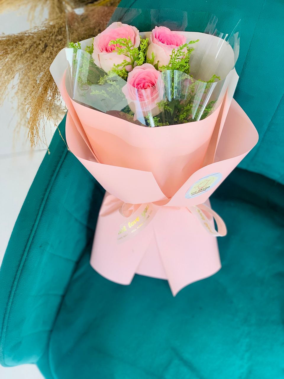 A gentle burst of cheer and comfort, the Blush Harmony bouquet features six soft pink and cream daisies, symbolizing hope, healing, and brighter days ahead. Accented with airy baby’s breath and wrapped in blush-toned paper, this uplifting arrangement brings warmth and encouragement to someone on the road to recovery.