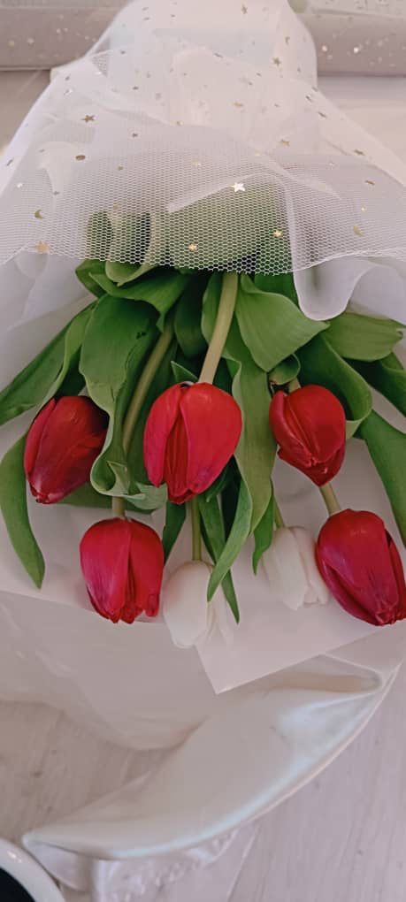Rich and elegant, the Crimson Grace bouquet is a stunning display of deep, passionate beauty with its vibrant red tulips. This classic arrangement, gracefully wrapped and tied with a ribbon, radiates love, admiration, and heartfelt wishes—making it a thoughtful gift for any special occasion.