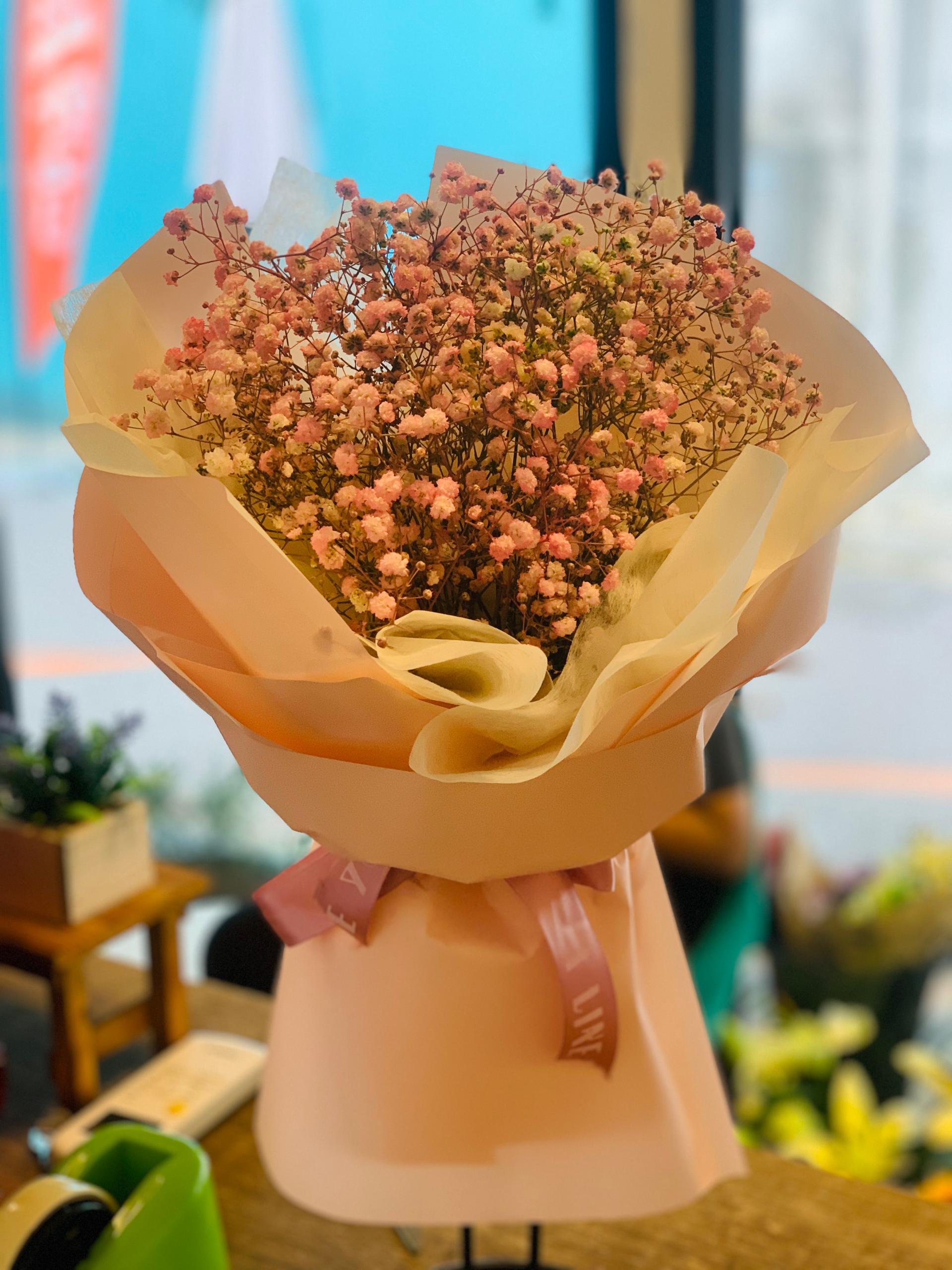 Like a soft embrace of nature, the Ethereal Hydrangea Clouds bouquet features a lush arrangement of delicate pink hydrangea blooms. These cloud-like blossoms are gently nestled within layers of sheer white wrapping, creating an airy and dreamlike aesthetic. This enchanting bouquet exudes a sense of gentle beauty and heartfelt sentiment, perfect for expressing grace, gratitude, or sincere affection.