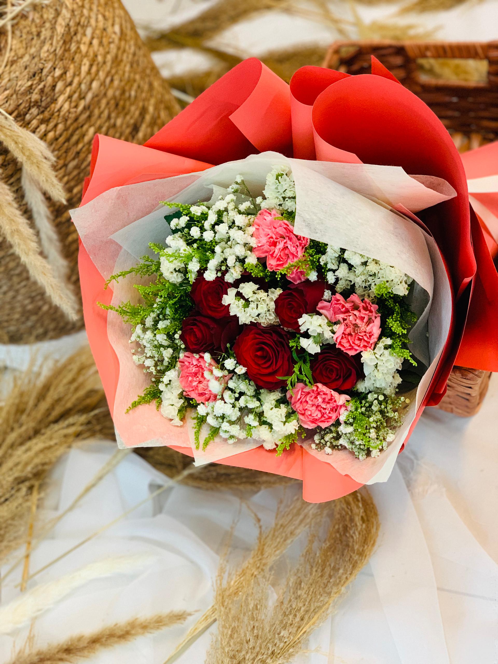 Love doesn’t fade—it blooms deeper with time. Graceful Harmony is a heartfelt bouquet combining 6 stalks of roses with 6 stalks of carnations, symbolizing enduring love and gentle devotion. The soft colors and delicate fragrance make it a beautiful anniversary gesture for the one who’s been by your side through it all.